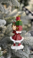 Декоративна фігурка на підвісі Дівчинка з подарунками 12 см, полістоун