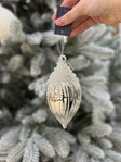 Ялинкова прикраса з присипкою лід - куля, олива, цибуля, 8 см, 3 види, колір - срібло