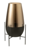 Ваза J-LINE – стильний та елегантний аксесуар для декору, який поєднує сучасний дизайн і вишукані деталі. Чорне скло у поєднанні з золотими та металевими елементами створює ефектний акцент у будь-якому інтер’єрі. Ідеальна для великих квіткових композицій або як самостійний декоративний предмет.
