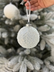 Ялинкова куля рельєфної форми Листя з декором з глітеру 10 см, колір - білий сніжний
