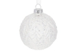 Ялинкова куля рельєфної форми Листя з декором із глітеру 8 см, колір - білий сніжний