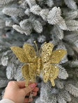 Ялинкова прикраса на кліпі Метелик, 17 см, колір - золотий глітер