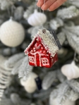 Ялинкова фігурна прикраса зі скла Будиночок, 10 см, колір - червоний з білим