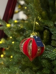 Ялинкова прикраса рельєфної форми "Червоний оксамит" 10 см, колір - червоний з платиною