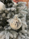 Ялинкова куля - срібло з покриттям "лід", з декором з бусин та перлів, 10 см